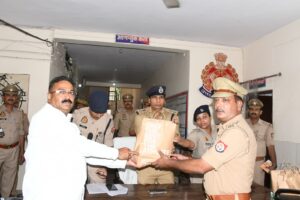 *फ्यूल स्टेशन से डीजल चोरी के अभियोग में त्वरित कार्यवाही करते हुए अभियुक्तगण की गिरफ्तारी व बरामदगी करने वाली थाना नई मण्डी पुलिस टीम को SSP संजय वर्मा की उपस्थिति में वादी द्वारा किया गया सम्मानित*