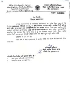 विद्युत विभाग ने किया जारी आदेश, विभाग द्वारा मरम्मत कार्य के दौरान रहेगी कहीं क्षेत्र में विद्युत आपूर्ति बाधित