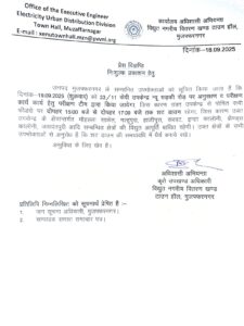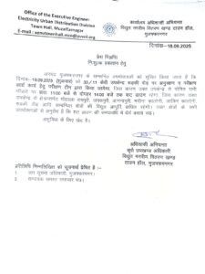 मुजफ्फरनगर के विद्युत विभाग द्वारा जारी की गई सूचना जिसमें प्रशिक्षण कार्य के अंतर्गत विद्युत आपूर्ति रहेगी बाधित