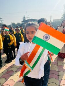 आज दिनाँक 26 जनवरी 2026 को आर्य एकेडमी इण्टरनेशनल स्कूल, ए2जेड रोड़, में 77वाँ गणतंत्र दिवस बड़े ही हर्षोल्लास एवं गरिमा के साथ मनाया गया। कार्यक्रम का शुभारंभ ध्वजारोहण के साथ विद्यालय की प्रधानाचार्या सोनिका आर्य जी ने किया, जिसके पश्चात राष्ट्रगान एव झंडा गीत गाया गया।