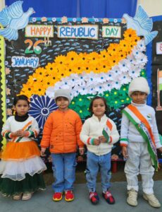विद्यालय के निदेशक डॉ. रजत जिंदल ने अपने स्वागत संबोधन में सभी अतिथियों का आभार व्यक्त करते हुए कहा कि गणतंत्र दिवस हमें हमारे संविधान, अधिकारों एवं कर्तव्यों की याद दिलाता है और बच्चों में देशप्रेम एवं संस्कारों का बीजारोपण करता है।
