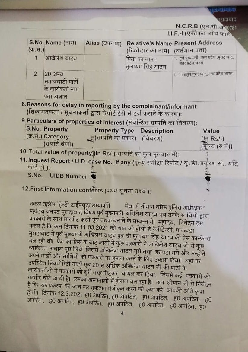 मुरादाबाद-अखिलेश यादव पर FIR दर्ज़,मुरादाबाद में पत्रकार मारपीट मामले में दर्ज़ हुई FIR..
