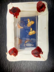 • 05 अदद अंगूठी पीली धातू ( 03 अंगूठी लेडीज,02 अंगूठी पुरूष)