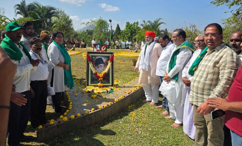 चौधरी राकेश टिकैत ने कर्नाटक के बड़े किसान नेता प्रोफेसर नन्जुन्दा स्वामी की पुण्यतिथि पर उनकी समाधि पर पुष्प अर्पित किये