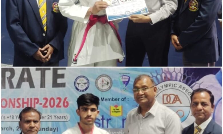 कराटे एसोसिएशन ऑफ इंडिया के तत्वाधान में 22 से 24 मार्च को भोपाल ( मध्य प्रदेश) में होने वाली कराटे राष्ट्रीय प्रतियोगिता में रुद्रांश मालिक मेल इंडिविजुअल काता वे -55 किलो भार वर्ग में शरद आत्रेय का चयन हुआ । डिस्ट्रिक्ट स्पोर्ट्स कराटे एसोसिएशन ऑफ मुजफ्फरनगर के जनरल सेक्रेटरी राजेश कौशिक ने दोनों खिलाड़ियों को आशीर्वाद देकर आने वाली राष्ट्रीय प्रतियोगिता के लिए उत्साह बढ़ाया।