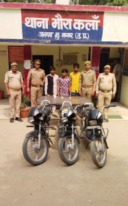 अवगत कराना है कि दिनांक 03.05.2022 की रात्रि को थाना भौराकलां पुलिस द्वारा मुण्डभर गेट के पास से 03 अंतर्राज्यीय वाहन चोर अभियुक्तों को गिरफ्तार किया गया। स्थानीय पुलिस द्वारा अभियुक्तगण की गिरफ्तारी कर दिनांक 03.05.2022 को थाना भौराकलां पर पंजीकृत वाहन चोरी के अभियोग का भी सफल अनावरण किया गया।