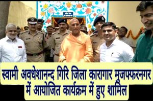 स्वामी अवधेशानन्द गिरि ने जिला मुजफ्फरनगर के कारागार में आयोजित विभिन्न कार्यक्रमों में भाग लेते हुये सर्वप्रथम स्वतंत्रता संग्राम सेनानी स्मृति पटल पर माल्यार्पण कर पुष्पांजली अर्पित की। उसके बाद जेल परिसर मंदिर में दीप प्रज्जवलन कर शिवलिंग पर जलाभिषेक किया तथा कारागार में नवग्रह वाटिका का उद्घाटन करते हुए वृक्षारोपण किया। जिला कारागार, मुजफ्फरनगर के अस्पताल के विस्तारीकरण का फीता काटकर स्वामी अवधेशानन्द गिरि द्वारा शुभारम्भ किया गया तथा अस्पताल में भर्ती बंदियों को फल आदि वितरित किये। भोजनालय का अवलोकन करते हुये स्वामी अवधेशानन्द गिरि ने जेल प्रशासन एवं व्यवस्था की प्रशंसा की। उनके द्वारा नवीन पुस्तकालय का उद्घाटन भी किया गया