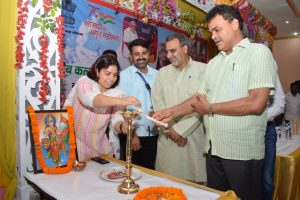 प्रधानमंत्री व मुख्यमंत्री के कार्यक्रम में द्वीप प्रज्जवलित ,माल्यार्पण कर सजीव प्रसारण जिला मुख्यालय, कुकड़ा मंडी स्थित बैंकट हॉल पर दिखाया गया