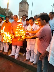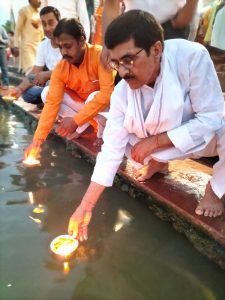 प्राचीन तीर्थ स्थली शुकतीर्थ में गंगा घाट पर महाआरती के दौरान जिला पंचायत अध्यक्ष डॉ.वीरपाल निर्वाल,