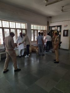 डॉग स्क्वॉड व AS चैक टीम द्वारा स्थानीय पुलिस बल के साथ कचहरी परिसर में *खडे वाहनों एवं संदिग्ध वस्तुओं की जांच की साथ ही परिसर के आसपास घूम रहे संदिग्ध व्यक्तियों से पूछताछ की गई* तथा वहां मौजूद व्यक्तियों से अपील की गयी कि कोई भी संदिग्ध व्यक्ति/वस्तु दिखने पर तत्काल पुलिस को सूचना दे।
